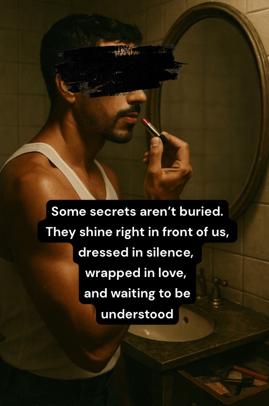 I was a hyper-observant child, always watching, collecting moments like puzzle pieces. Even if I didn’t know what they meant yet. Like the makeup on his side of the sink. My mom was pale, barely a hint of color to her cheeks. My dad, on the other hand, was golden, always outdoors in his short, hot pink shorts, his legs shaved smooth, his tan lines sharp and proud. He shimmered, radiant in a way most men never dared to be. The makeup by his sink matching his skin tone, and not hers.